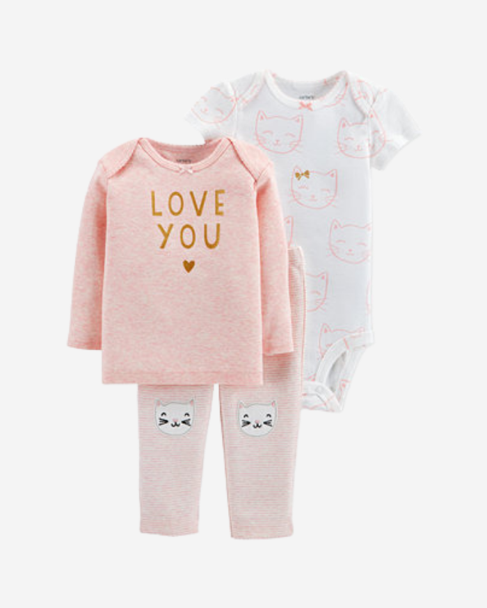Carter’s Baby Girls 3Pc. Love You T-Shirt, Bodysuit & Pants Set